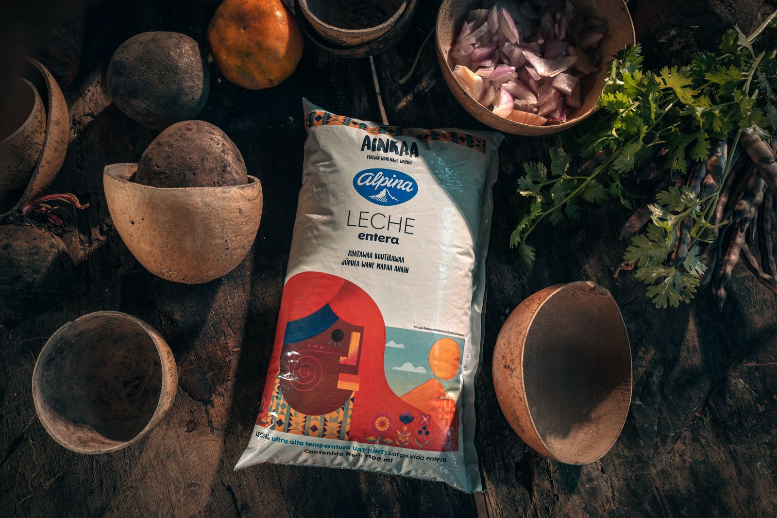 En línea con su compromiso de llevar nutrición a todos los rincones de Colombia, Alpina hizo un reconocimiento cultural a las comunidades Wayuu, a través de un proyecto denominado AINKAA, una iniciativa de nutrición sostenible realizada de la mano de la Fundación Alpina como un homenaje a esta cultura y todo el trabajo que estas comunidades han realizado en conjunto con la Fundación en la Alta Guajira durante los últimos diez años.