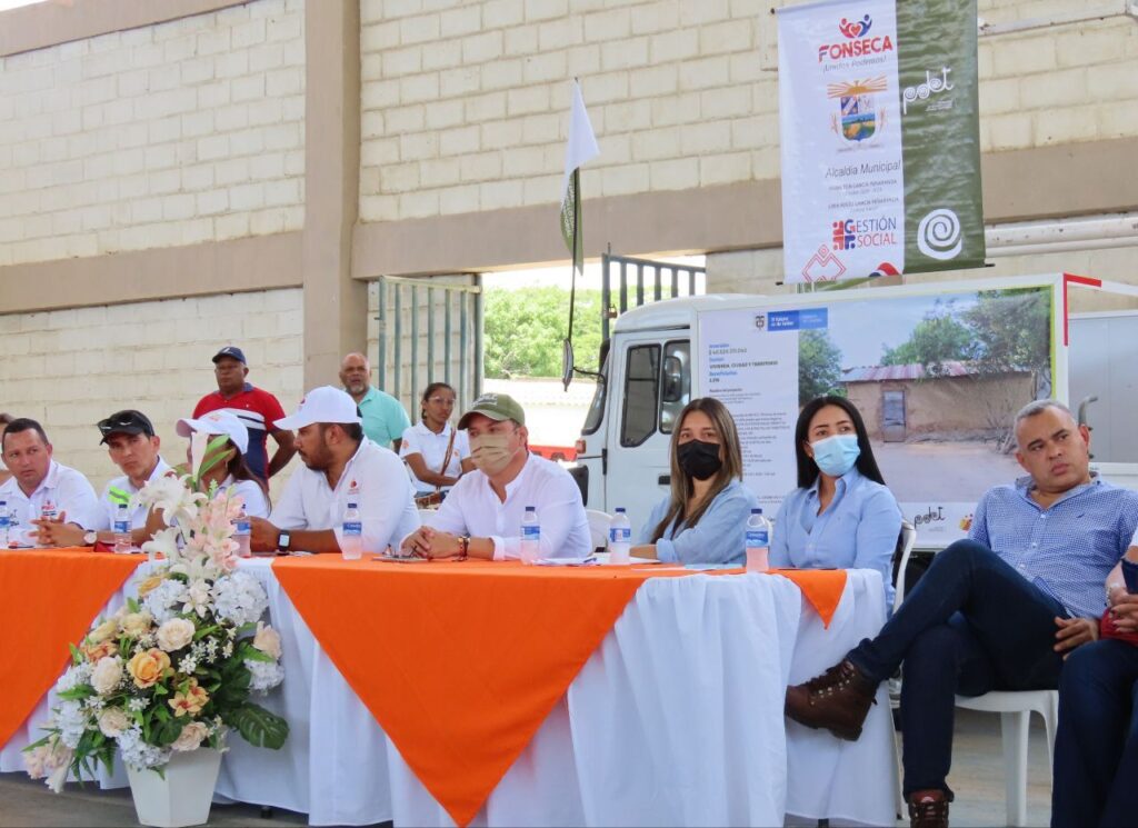 Continúa la socialización de viviendas rurales gratuitas en sitio propio desde Fonseca. Esta vez, el alcalde de esa localidad: Hamilton Raúl García Peñaranda, puso la primera piedra desde el corregimiento de El Hatico, donde serán construidas 140 casas. El momento se dio tras la exposición del proyecto y la lectura de los primeros 50 beneficiarios.